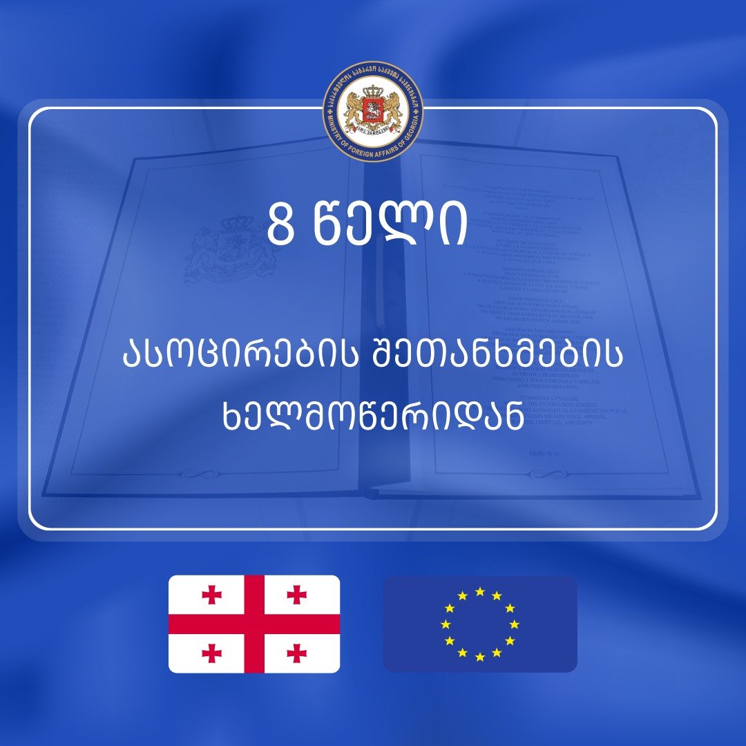 “დღეს აღვნიშნავთ ევროკავშირთან ასოცირების შეთანხმების ხელმოწერის მე-8 წლისთავს, რომლითაც საქართველო წარმატებით უახლოვდება ევროკავშირს ინსტიტუციურ და საკანონმდებლო დონეზე.
