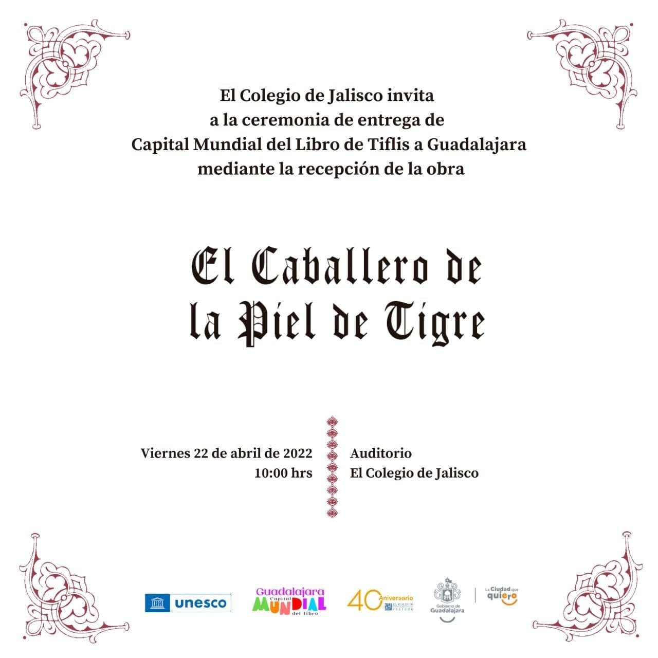მიწვეულ სტუმრებს საჩუქრად გადაეცათ საელჩოსა და El Colegio de Jalisco-ს მიერ გამოცემული “ვეფხისტყა...