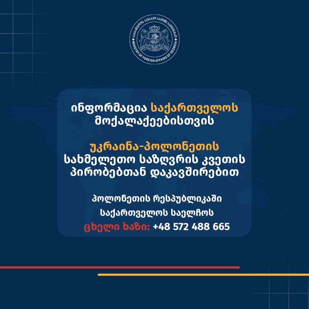 საქართველოს საელჩო პოლონეთის რესპუბლიკაში საგანგებო რეჟიმში მუშაობს