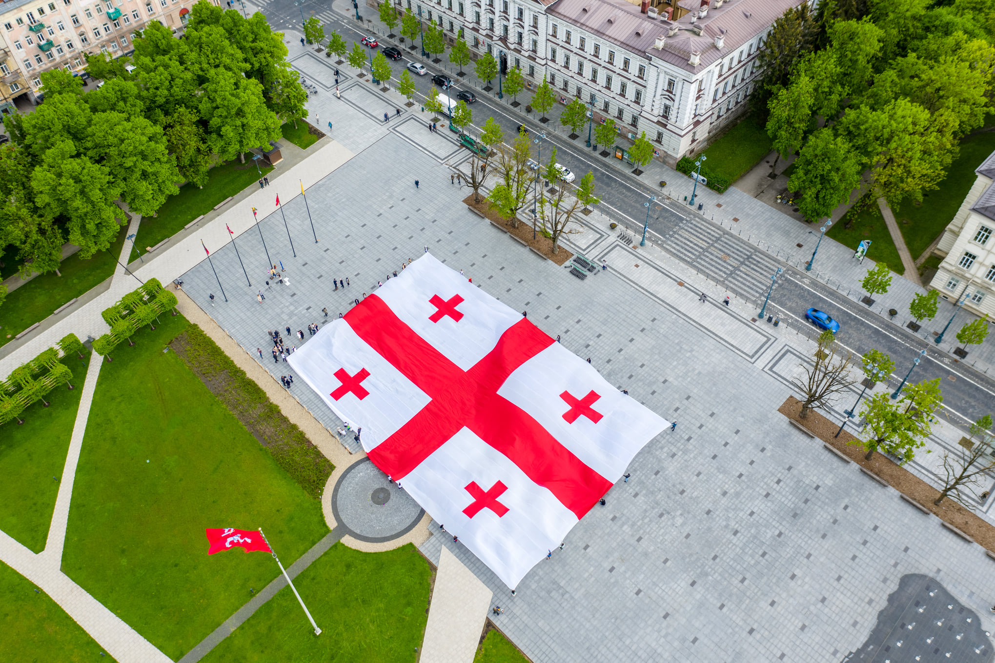 ვილნიუსის ცენტრალურ მოედანზე გაიშალა საქართველოს დროშა და შესრულდა საქართველოსა და ლიეტუვის ეროვნ...
