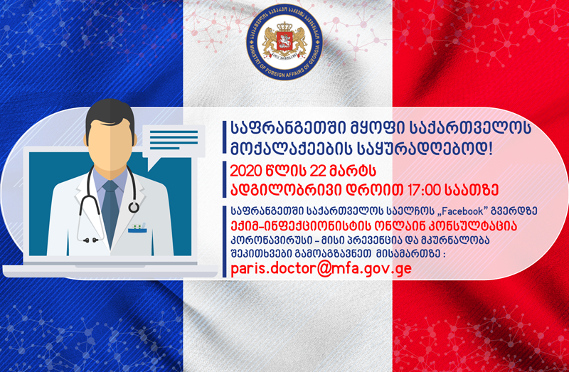 კონსულტაცია დაიწყება პარიზის დროით 17:00 სთ-ზე საფრანგეთში საქართველოს საელჩოს Facebook გვერდზე