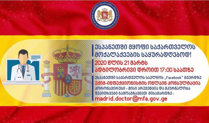 კონსულტაცია დაიწყება მადრიდის დროით 17:00 სთ-ზე ესპანეთში საქართველოს საელჩოს Facebook გვერდზე