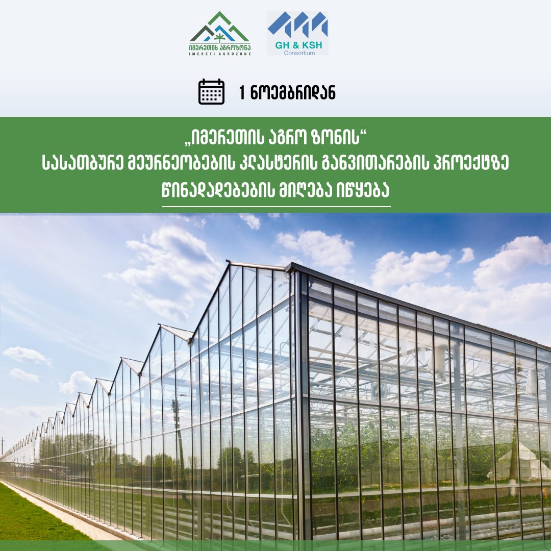 საქართველოს გარემოს დაცვის და სოფლის მეურნეობის სამინისტროს და სოფლის განვითარების სააგენტოს ინიციატივით, “იმერეთის აგრო ზონა” აცხადებს წინადადებების მიღებას სასათბურე კლასტერის განვითარების პროექტის ფარგლებში.