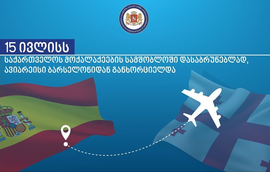 მსოფლიოში COVID-19-ის გავრცელების ფონზე, საქართველოს სახელმწიფო განაგრძობს უცხოეთში მყოფი თანამემამულეების სამშობლოში ეტაპობრივი და ორგანიზებული დაბრუნების პროცესს. საკოორდინაციო საბჭოს გადაწყვეტილებით, საზღვარგარეთ მყოფი საქართველოს მოქალაქეების სამშობლოში დასაბრუნებლად, 15 ივლისს შესრულდა ჩარტერული რეისი ბარსელონიდან.