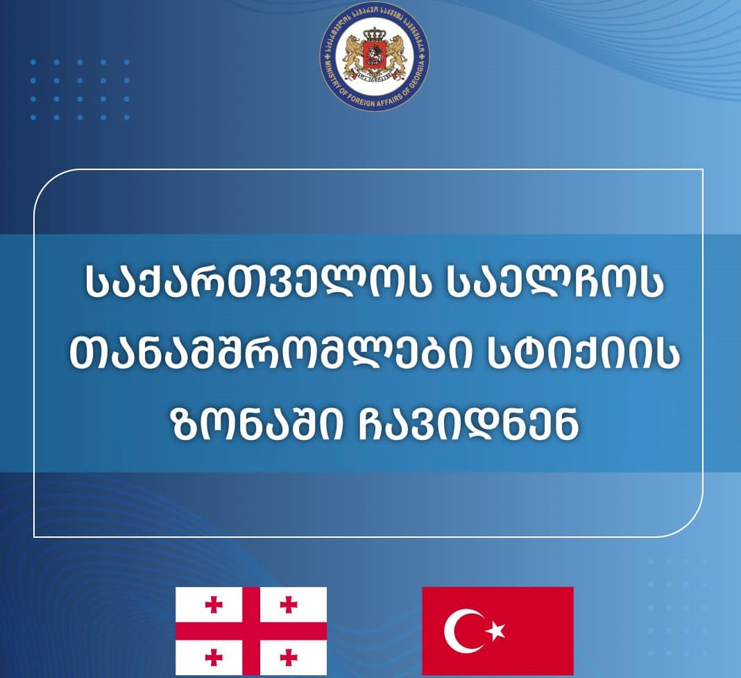 საქართველოს საგარეო საქმეთა მინისტრის გადაწყვეტილების შესაბამისად, 12 თებერვალს, თურქეთის რესპუბლიკაში საქართველოს ელჩი გიორგი ჯანჯღავა საელჩოს თანამშრომლებთან ერთად, სტიქიის ზონაში ჩავიდა.