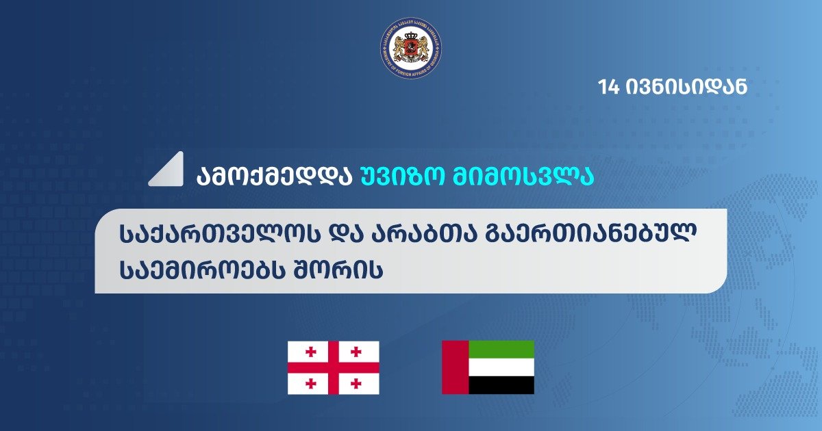 14 ივნისიდან ძალაში შევიდა საქართველოსა და არაბთა გაერთიანებულ საემიროებს შორის უვიზო მიმოსვლის რეჟიმი.