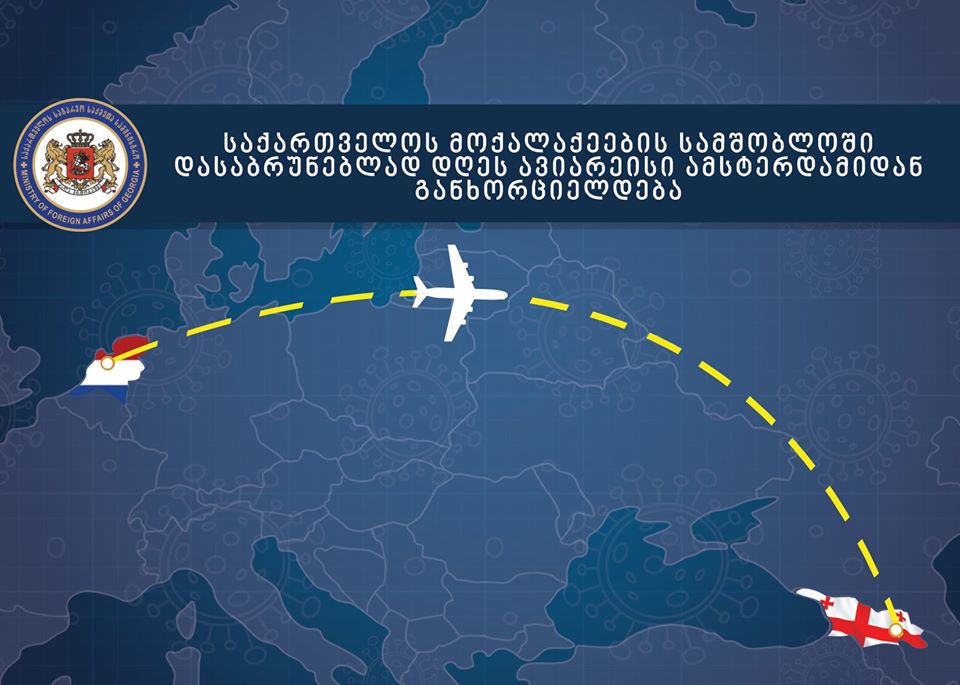 - 15 მაისი - ამსტერდამი-თბილისი - აღნიშნული ავიარეისი განკუთვნილია მხოლოდ ტრანზიტული მგზავრებისათვის, კერძოდ, საქართველოს იმ მოქალაქეებისათვის, რომლებიც იმყოფებიან ამერიკის კონტინენტზე და სურთ სამშობლოში დაბრუნება;
