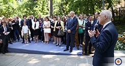 გახსნის საზეიმო ღონისძიებაზე დამსწრე საზოგადოებას სიტყვით მიმართეს საქართველოს პრეზიდენტმა სალომე ზურაბიშვილმა, პარლამენტის თავმჯდომარემ ირაკლი კობახიძემ, საგარეო საქმეთა მინისტრმა დავით ზალკალიანმა და საფრანგეთში მყოფ ქართველ ლტოლვილთა სათვისტომოს თავმჯდომარემ ოთარ ზურაბიშვილმა.
