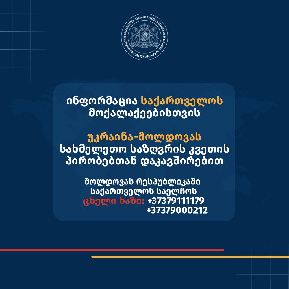 მნიშვნელოვანი ინფორმაცია უკრაინიდან მოლდოვაში შემსვლელ საქართველოს მოქალაქეთა საყურადღებოდ!
