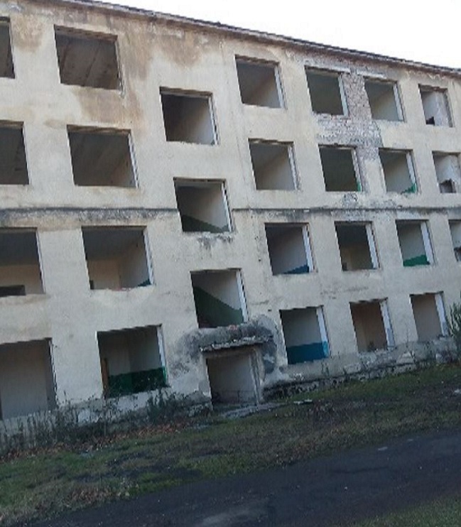 შენობ(ებ)ის აღწერა: ოთხი შენობა-ნაგებობა, რომლებიც ქმნიან ერთიან კომპლექსს. I შენობის ფართობი - 836 მ2; II შენობის ფართობი - 12 მ2; III შენობის ფართობი - 1487 მ2; IV შენობის ფართობი - 34 მ2; სართულების რაოდენობა: 2 და 4; ოთახების რაოდენობა: 132; ჭერის სიმაღლე: 3.2 მ. ტექნიკური მდგომარეობა: შენობები საჭიროებენ რეკონსტრუქციას. შენობების ფუნდამენტი და კედლები ვარგისია და მყარი.